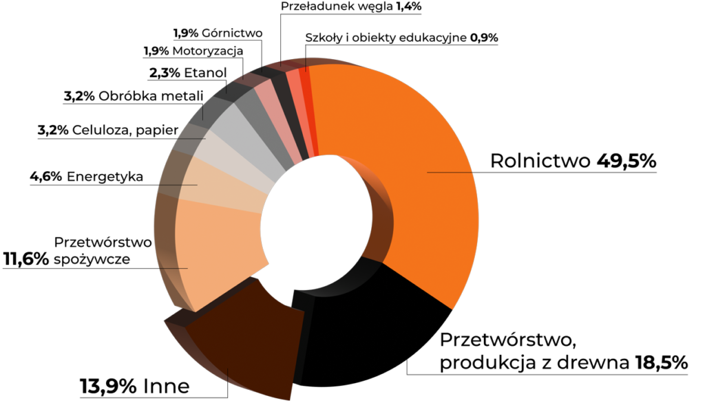 Jak wynika ze szczegółowego podziału zdarzeń, dla branż do kategorii „inne” zaliczono m.in. celulozowo-papiernicze, etanolowe, szkoły średnie i obiekty edukacyjne.